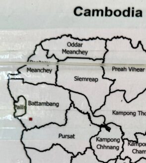 今回は、タイとの戦争の一時停止中で地図の通り(左下角の赤点)現場がタイ国境にあまりにも近くいため、軍から許可が出ないとのことで地雷の爆破は断念しました。