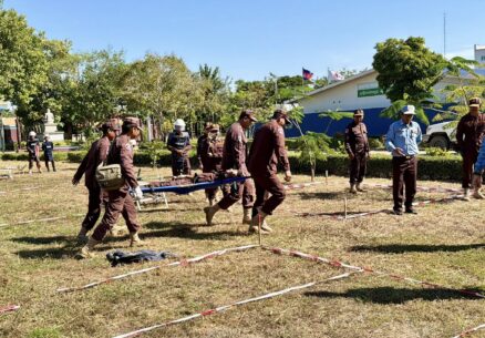 次に探索中に事故が起きた際の対応訓練。 如何にして救急車やヘリコプターに運ぶかの実践。