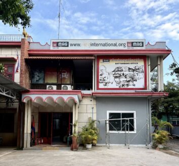 地雷撤去視察のため、朝6時45分にホテルを出発し、地雷撤去の国際NGO MAGのバッタンバン事務所に寄りました。