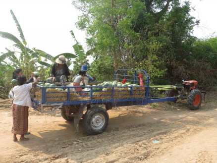 エンジン付荷車。スイカを積んで運んでいます。その他,人も含め乗せられるものは何でも乗せて運びます。